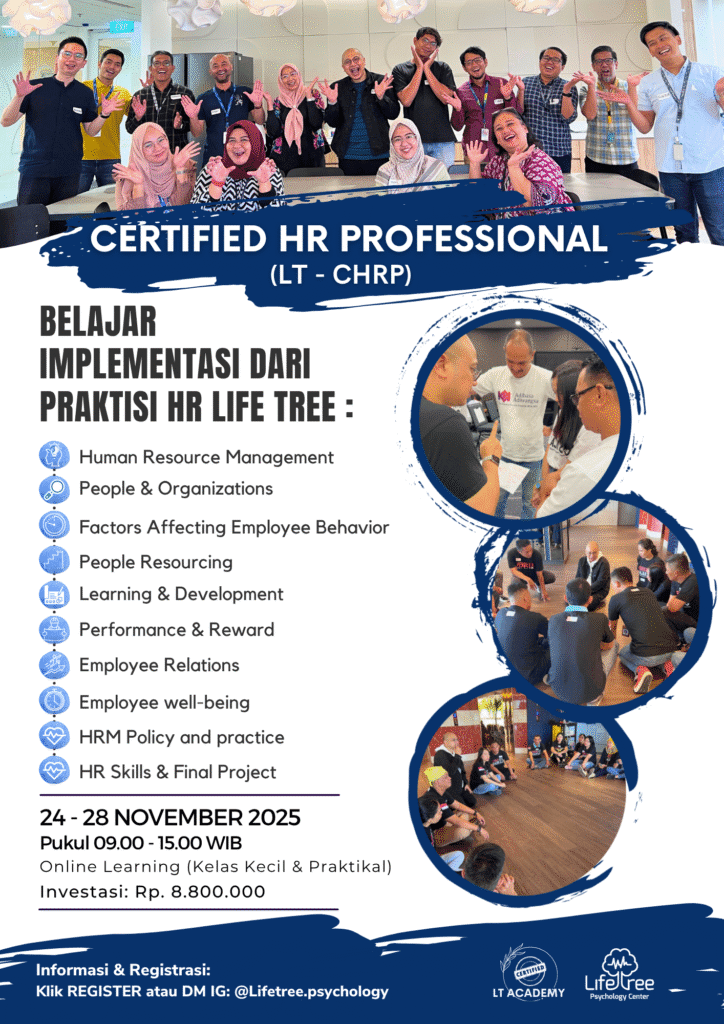 Program yang dirancang untuk mempelajari dan mengasah kemampuan HR secara menyeluruh sesuai dengan fungsi tugas serta kompetensi kunci untuk menjalankan peran dan fungsi strategis sebagai HR profesional di tempat kerja sahabat LT. Program ini akan memberian kesempatan mengimplementasikan dalam simulasi ataupun contoh model untuk setiap pillar yang ada dalam fungsi HR.