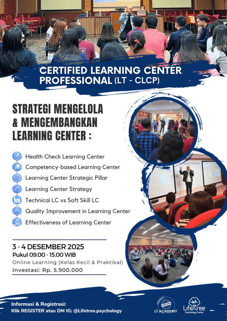 Program yang dirancang untuk mengenal, memahami prinsip-prinsip dasar dan bagaimana mengelola Learning Center dari 4 spektrum yaitu budget, strategi LC, pengelolaan sumber daya manusia dan SME, serta pengembangan program berbasis kompetensi dan visi organisasi yang telah ditetapkan.